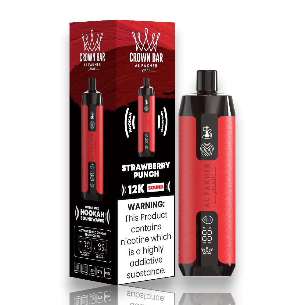 استعد لتجربة فيب غير مسبوقة مع جهاز Crown Bar 12K Sound من Al Fakher – أول جهاز ديسبوزابل يجمع بين النكهة الفاخرة والمؤثرات الصوتية التي تحاكي صوت الشيشة التقليدية.